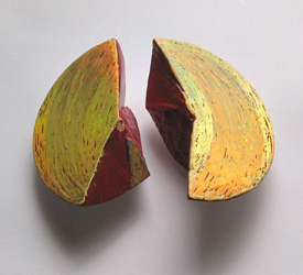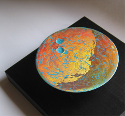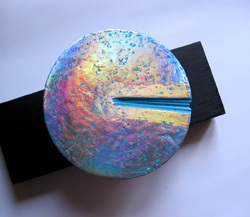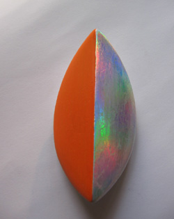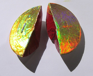 geteilte Halbkugel ⌀ ca 11 cm, mixed media, acryl, holographic painting on plaster of Paris